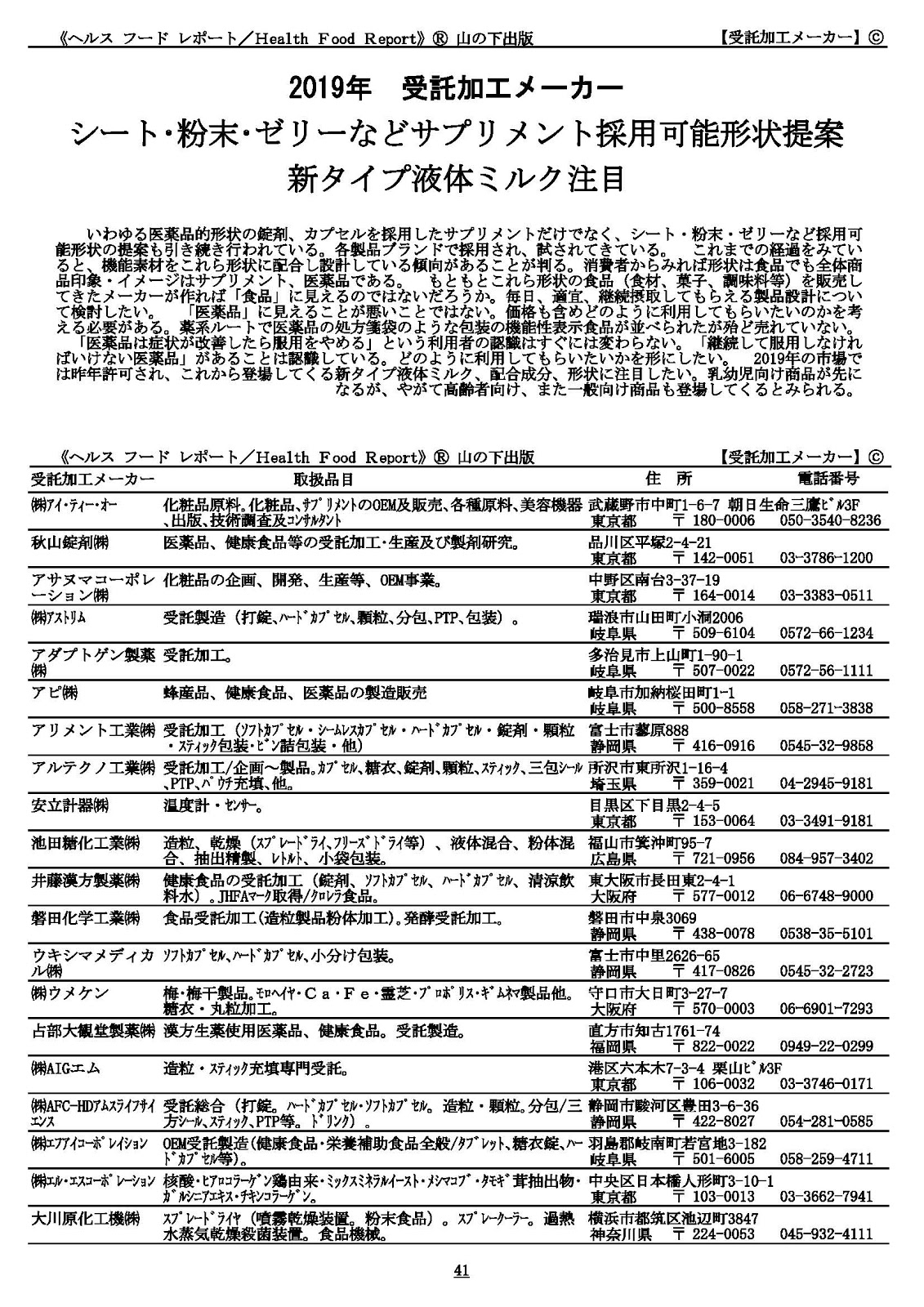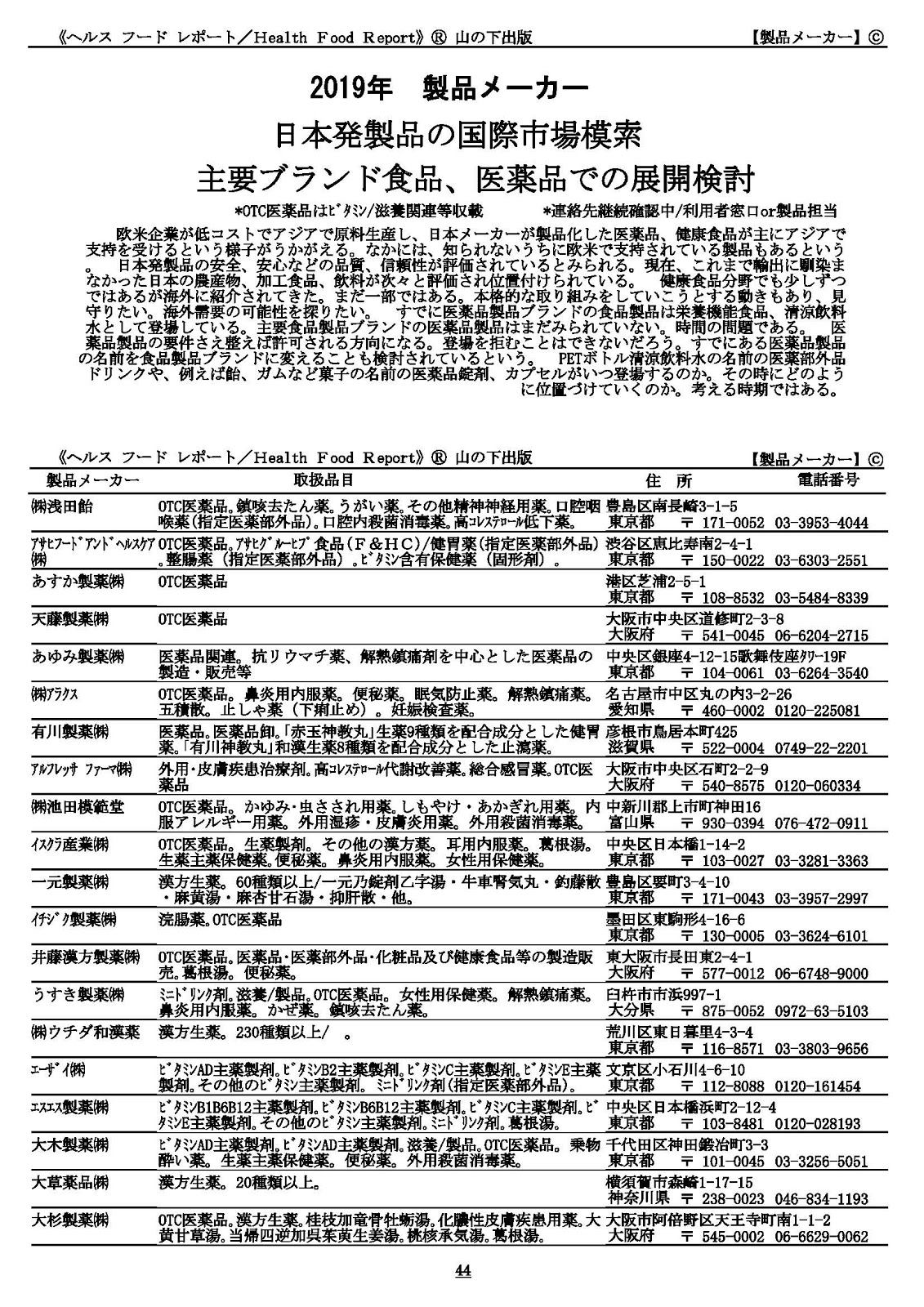 ■『hfr2019市場動向』索引「ヘルスフードレポート healthfoodreport」登録商標Ⓡ山の下出版著作権所有Ⓒ