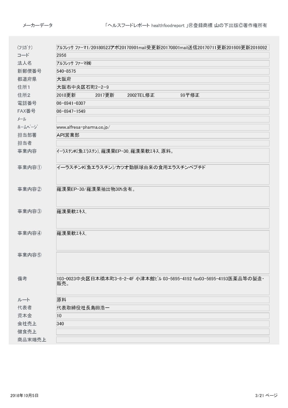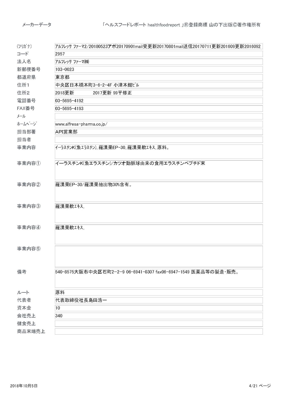 (フリガナ) アルフレッサ ファーマ1/20180913mail受更新20180801更新20170901mail受更新